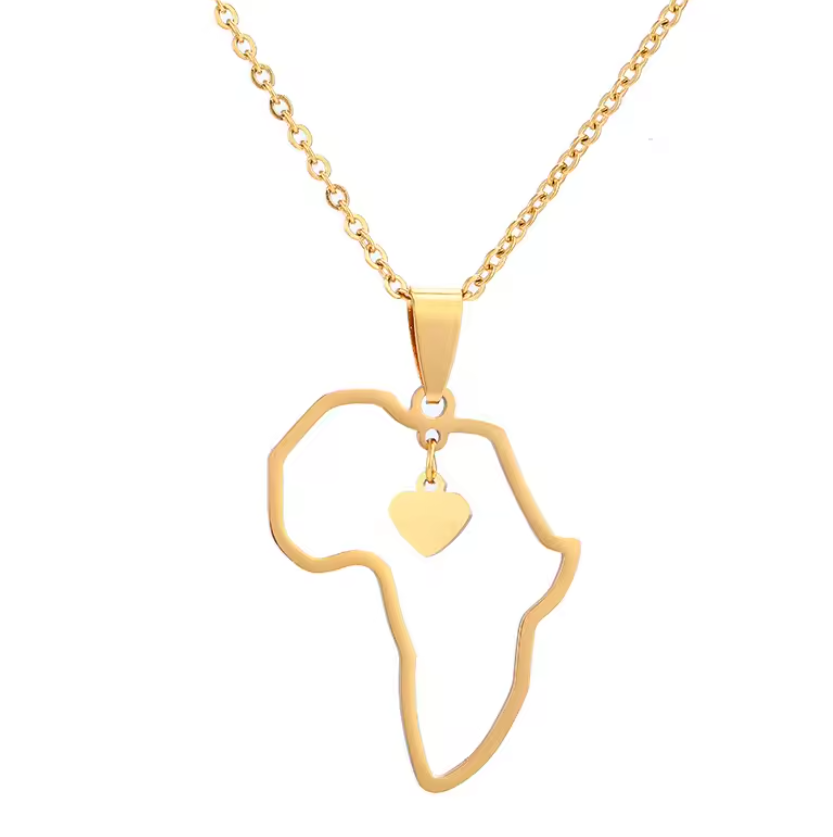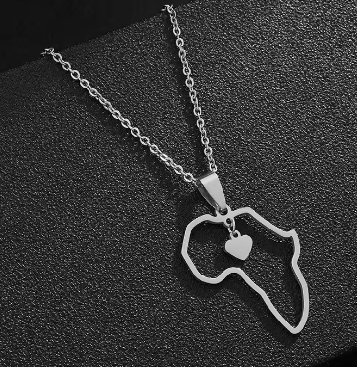 Embrace the beauty of Africa with this stunning necklace, featuring a silver or gold plated pendant adorned with a heart.